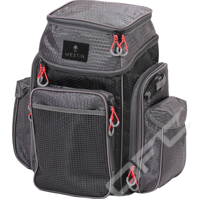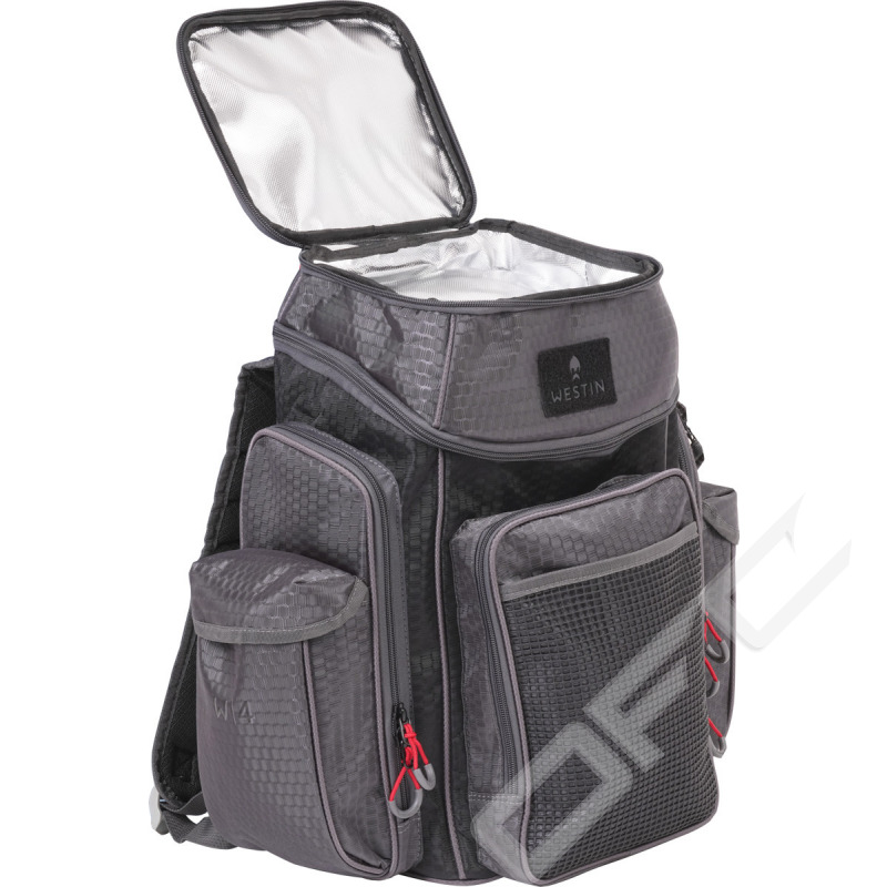W4 Backpack Plus sväljer allt du behöver för en dag vid vattnet. Huvudfacket med kylning håller din mat fräsch. Denna väska kommer med Westin Tackle Boxes, flera fickor, kardborreband för stängning och starka dragkedjor. De justerbara och vadderade remmarna gör väskan bekväm att bära.