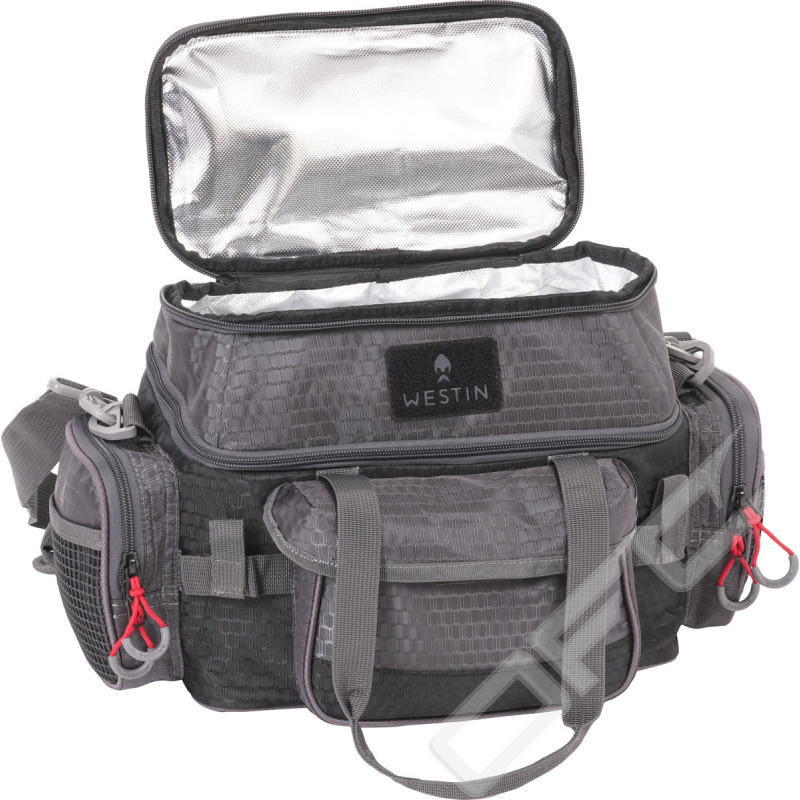 W4 Lure Bag Plus håller dina beten organiserade och maten fräsch. Denna väska har Westin Tackle Boxes, huvudfack med kylning, flera fickor, kardborreband för stängning och starka dragkedjor - den perfekta väskan för land- och båtfiske.