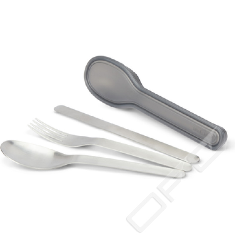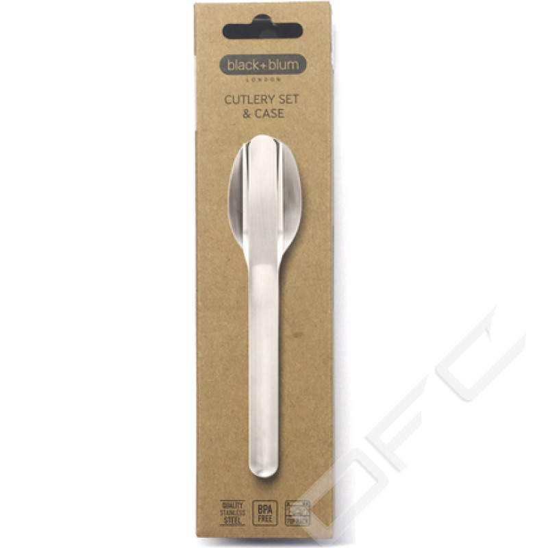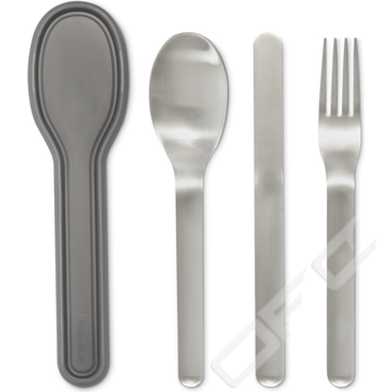 Black+Blums bestickset bestående av kniv, gaffel och sked i rostfritt stål. Levereras i praktisk och tålig box tillverkad av PP.