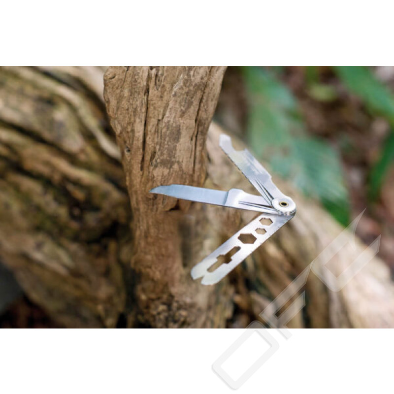 Funktioner: Skruvmejsel, flasköppnare, kniv, minisåg/fiskskalare, trådstrippa /