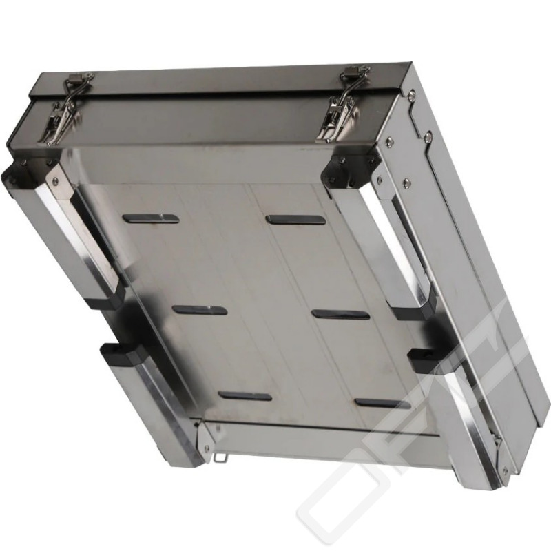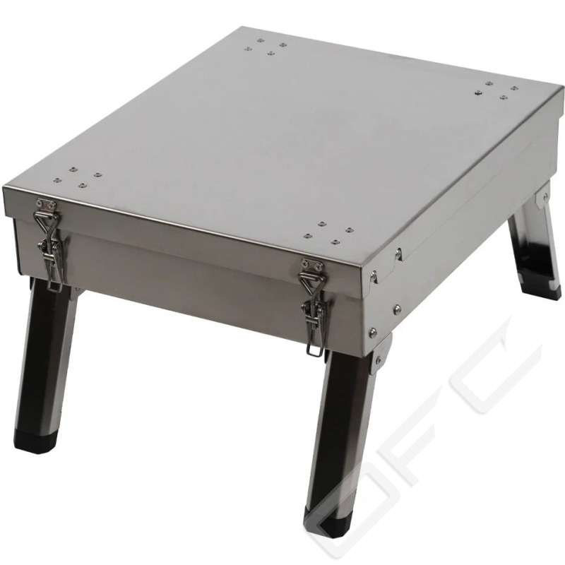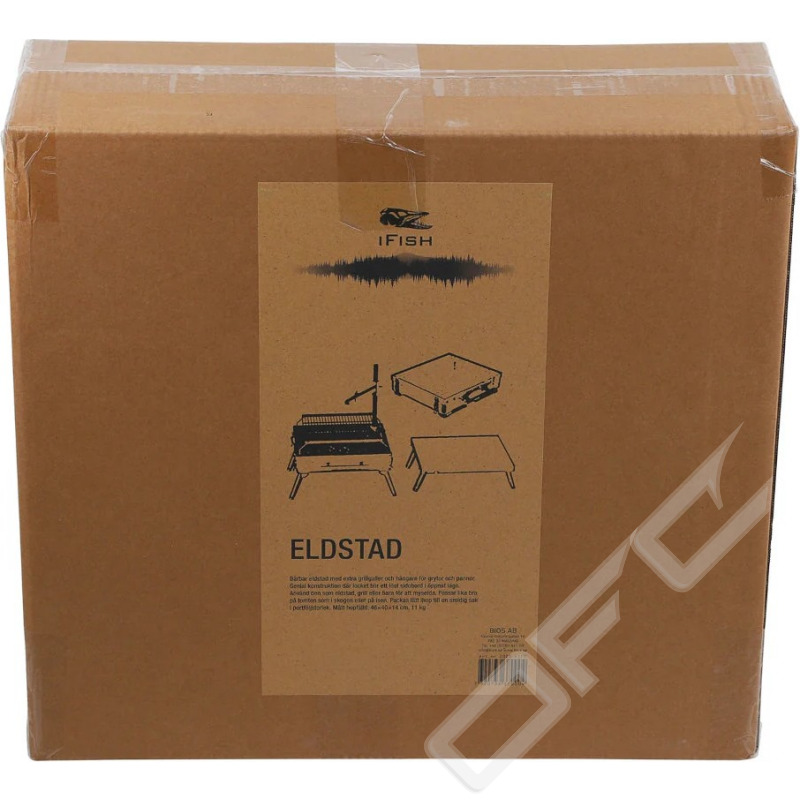 IFISH Eldstad tillverkad i kraftig rostfri plåt i portföljutförande. Eldstad kan enkelt fällas ut och står stabilt på alla underlag. Fyra utvikbara ben, två utvikbara sidostycken som ger bra avlastningsyta. Justerbart stativ för ex. stekpanna, justerbar hållare för ex. kaffepanna. Ett hopfällbart grillgaller i rostfritt stål medföljer.