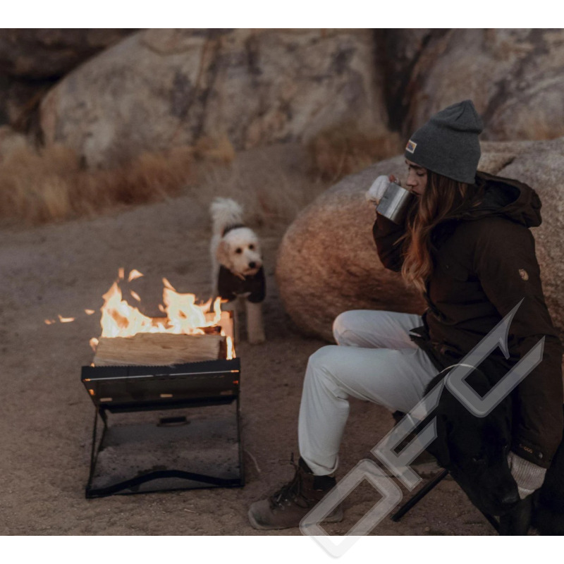 Bärbar eldstad för brasor och matlagning över öppen eld utan spår i marken.