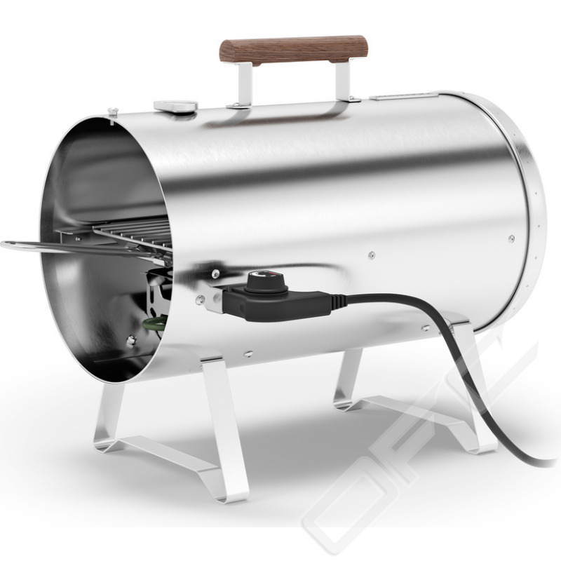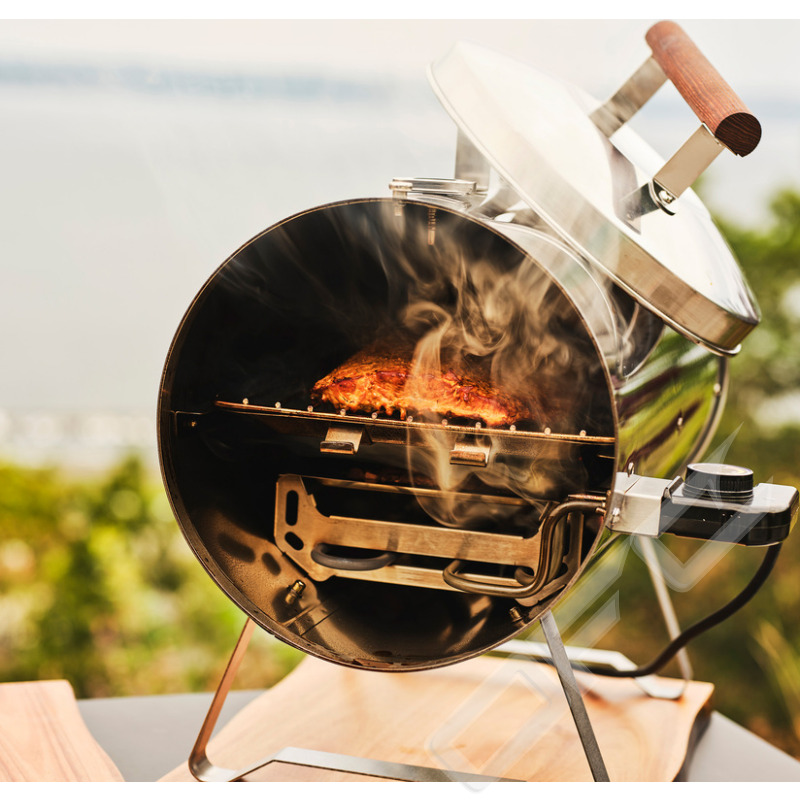 En rymlig och användarvänlig elektrisk rökugn tillverkad i rostfritt stål. Den justerbara temperaturen (80–220 °C) och den tydliga termometern ger dig god kontroll över rökningen. Rökugnen passar för många olika råvaror: fisk, kött, fågel, ost och grönsaker. Den är enkel att använda både till vardags och vid större tillfällen. Det avtagbara locket kan hängas på handtaget när du ska lyfta ut maten och en djup droppbricka samlar effektivt upp fett och vätska. Utrustad med ett rymligt galler, avtagbar sidomonterad termostat, ventil som släpper ut överflödig fukt och rök, samt stabila handtag i FSC-märkt rökt ask för ett hållbart och stilrent uttryck.