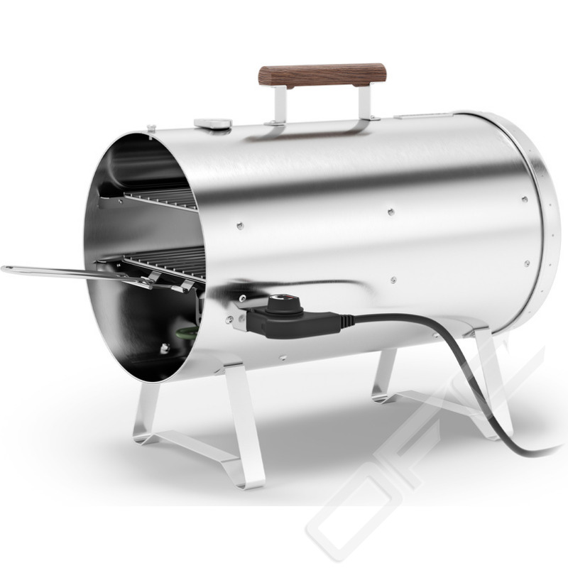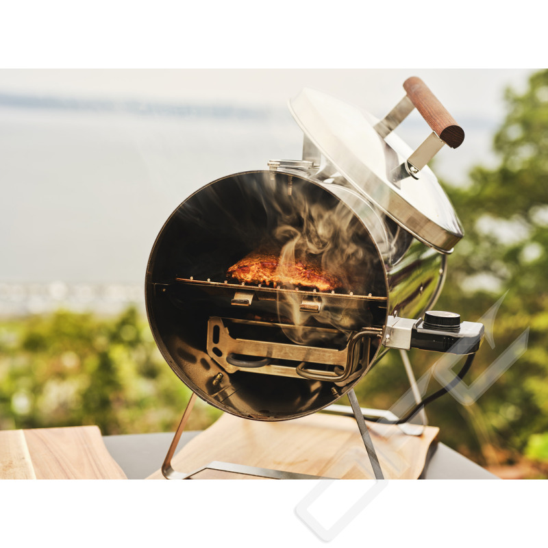 En rymlig och användarvänlig elektrisk rökugn tillverkad i rostfritt stål. Den justerbara temperaturen (80–220 °C) och den tydliga termometern ger dig god kontroll över rökningen. Rökugnen passar för många olika råvaror: fisk, kött, fågel, ost och grönsaker. Den är enkel att använda både till vardags och vid större tillfällen. Det avtagbara locket kan hängas på handtaget när du ska lyfta ut maten och en djup droppbricka samlar effektivt upp fett och vätska. Utrustad med två rymliga galler, avtagbar sidomonterad termostat, ventil som släpper ut överflödig fukt och rök, samt stabila handtag i FSC-märkt rökt ask för ett hållbart och stilrent uttryck.