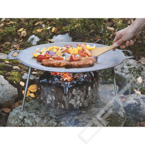 -Muurikka 48 har en diameter på 48 cm med ca. 22 cm långa löstagbara ben. (ingår) Tillverkad av 3 mm tjockt varmvalsat stål. Passar utmärkt till matlagning i större grupper.