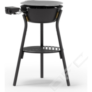 Setet innehåller även en praktisk hylla för förvaring och en stekhäll i varmvalsat stål med en diameter på 48 cm.