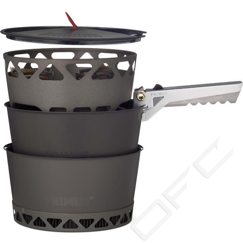 PrimeTech Stove Set 1,3L kommer med två 1,3-liters kastruller, varav en har värmeväxlare. Lock i transparent Tritan® med integrerat durkslag