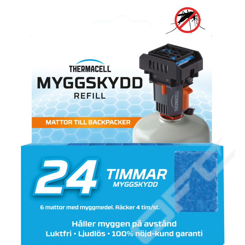 Refill 24 tim till Thermacell myggskydd Backpacker Refillen är själva myggskyddet och det är det som du kontinuerligt kompletterar produkten med. Tillsammans med apparaten skapas en skyddszon på ca 20m².