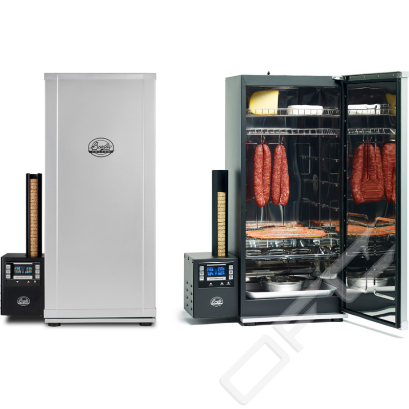 Modell BTDS108CE har sex galler som standard och en volym på 108 liter. Om du inte behöver den kapaciteten, så passar istället den digitala röken Bradley Smoker digital 4-galler med sina fyra galler och en volym på 76 liter. Den digitala modellens framsida har ett utseende som ser ut som borstat rostfritt. Insidan är av rostfritt stål. Precis som på Bradley Smoker Original är skåpet isolerat. Bradleys extra galler och jerky galler passar dessa modeller. Andra tillbehör finns också.