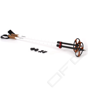 Staven har en tvådelad teleskopisk struktur som går upp till 150cm i längd. Stavarna är gjorda i aluminium, vilket är ett slitstarkt och lätt material. Mekanismen låser staven till önskad längd utan att lossna med tiden. Dessa stavar är utrustade med riktigt sköna korkhandtag som har en behaglig känsla och känns smått värmande. Handtagen är såklart utrustade med textilremmar.