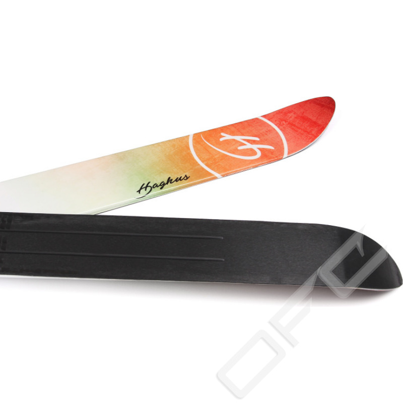 Haghus Wide 160cm är en bred och kort skogsskidmodell. Den breda 12cm skidan ger mycket bra bärförmåga i djup snö och med annars dålig bärighet. Mönstret på bottnen är av den fjälliga typen. Skidans struktur lättas upp med skumkanaler vilket gör skidorna riktigt lätta, trots sin bredd. 160 cm långa skogsskidor är helt rätt för att röra sig i en buskig eller tätare skog.