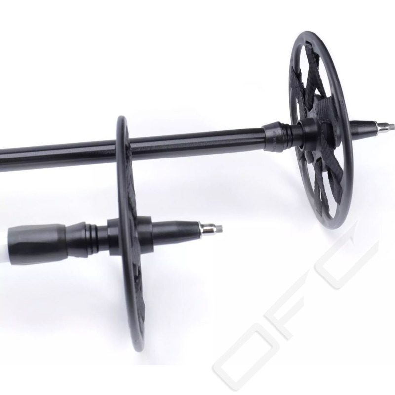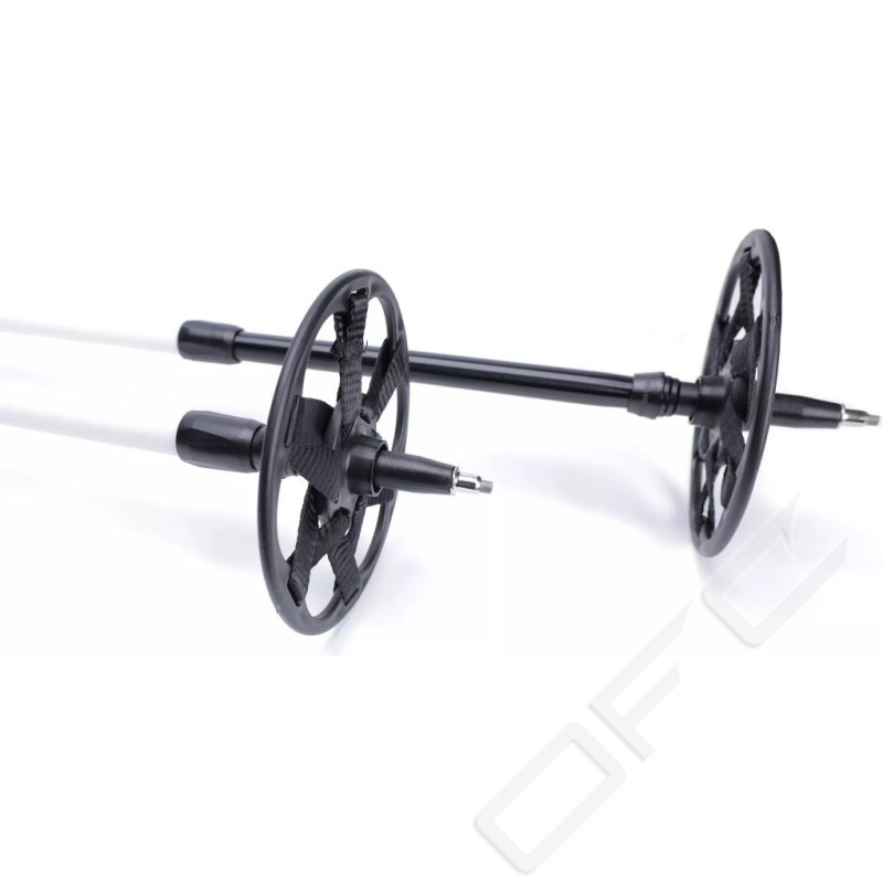 Stavar utrustade med en kraftig 2-delad aluminiumram. Stavarna har en justerbara längdär 90-150 cm.