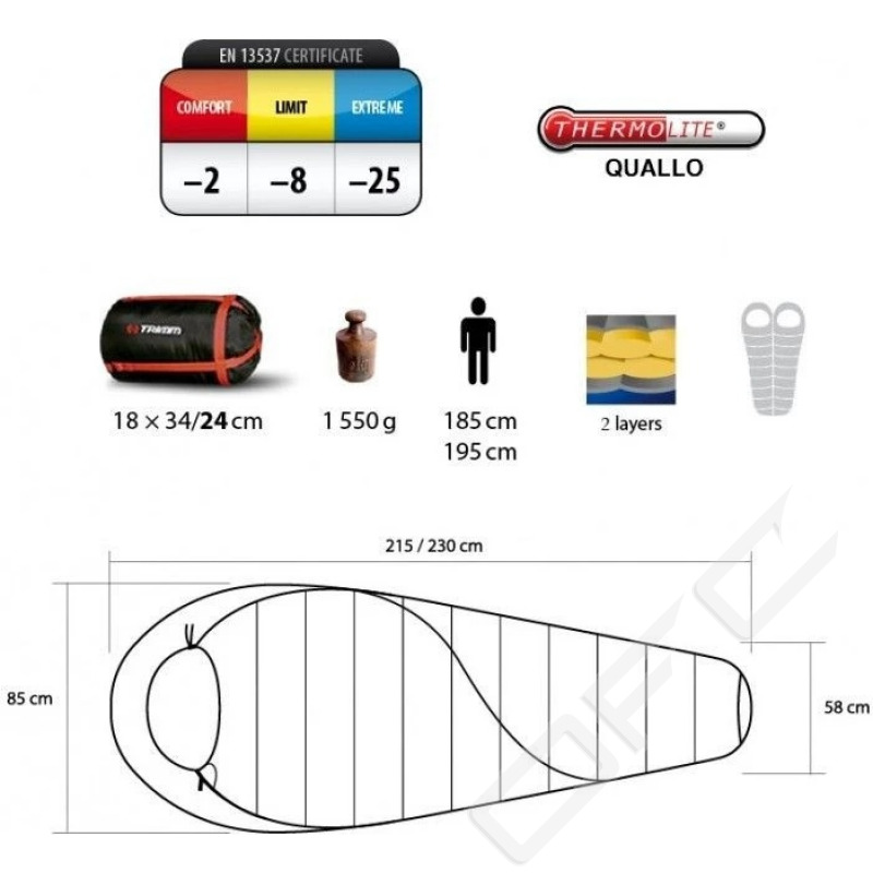 Trimm Balance är en av Trimms mest populära sovsäckar. Denna prisvärda sovsäck är lämplig för användning från vår till höst, när frosten inte längre är sträng, men nattemperaturen fortfarande kan vara nära noll. Balance är en lätt sovsäck, fylld med utmärkt isolerande Thermolite Quallo 7 och 2-lagers konstruktion. Komforttemperaturen för denna sovsäck är -2 grader.