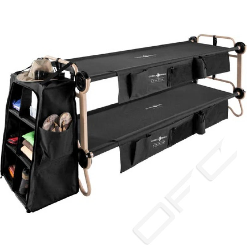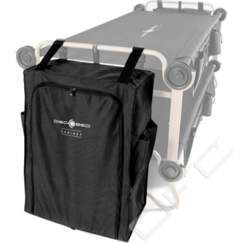 Denna garderob hjälper dig att hålla rent i ditt tält. Du fäster den helt enkelt direkt på våningssängen för att ge förvaringsutrymme för kläder eller personliga föremål. De praktiska avdelarna inuti möjliggör individuell uppdelning och är även löstagbara. Garderoben kan även fällas ihop helt för transport och förvaring. Passar till Disc-O-Bed L, XL och 2XL.