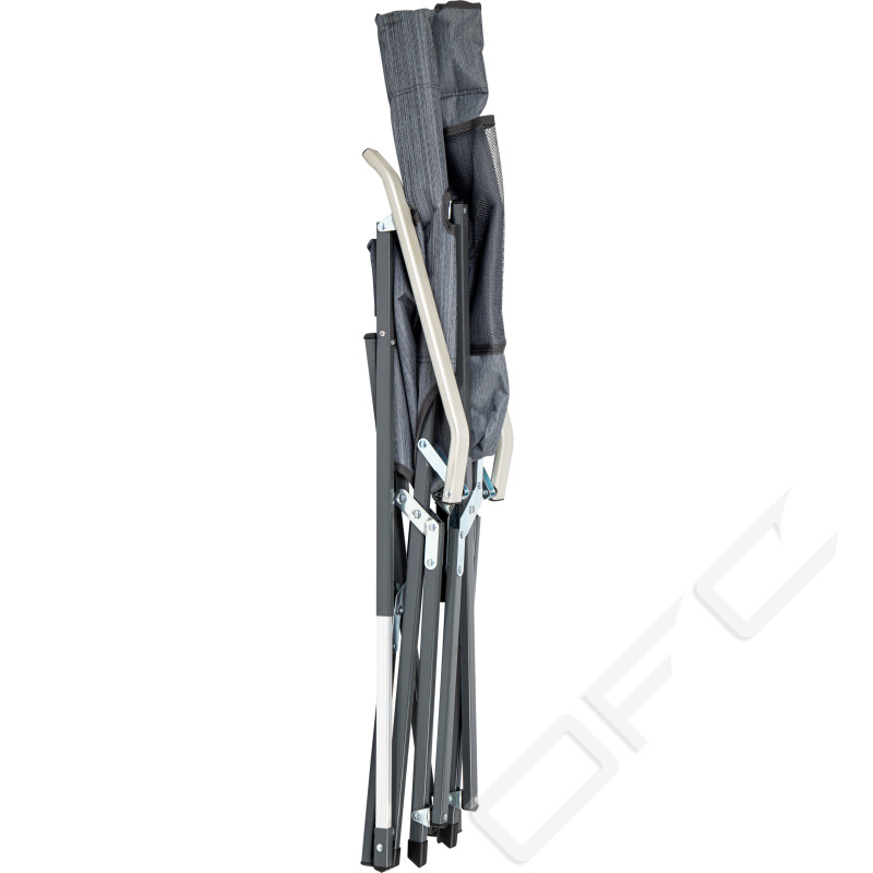 Hopfällbar stol för bekvämt uteliv. Stabil stålkonstruktion med armstöd av aluminium, skön sittdyna och ryggstöd. Levereras med förvaringspåse.