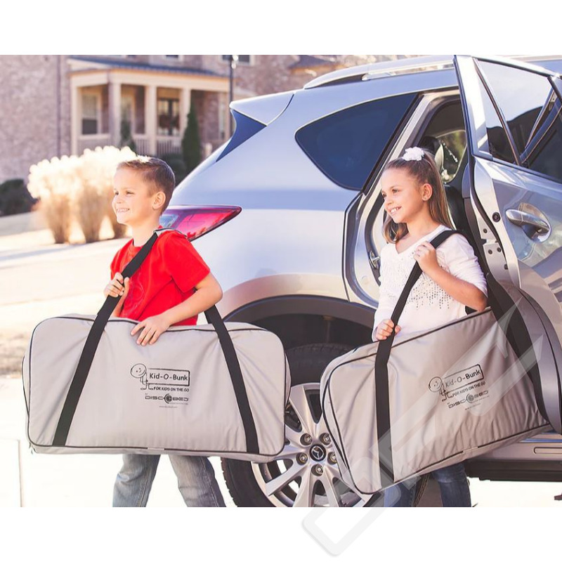 Perfekt för campingresor, övernattningar hos morföräldrar eller övernattande gäster. Sängen kommer i en grå bärväska för enkel transport och förvaring. Tack vare det patenterade Disc-Systemet är Kid-O-Bed snabb och enkel att montera, utan några verktyg.