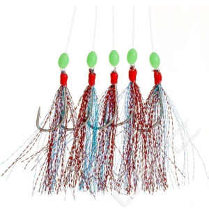 Fjäderhäckla Glittergul är en häckla från Fladen för fiske efter torsk och makrill. Just denna häckla är även utrustad med självlysande kulor. 5st krokar i storlek 4.