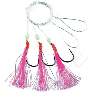 Fladen Fjäderhäckla rosa med kulor 3 krokar stl 3/0