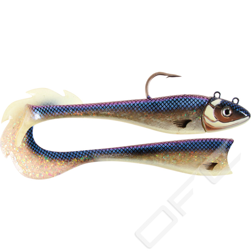 Hali Bandit väger 360 g (med skalle). Jiggskallen på 290 g har en superstark sylvass rostfri enkelkrok och en extra ögla till stingerkrok.