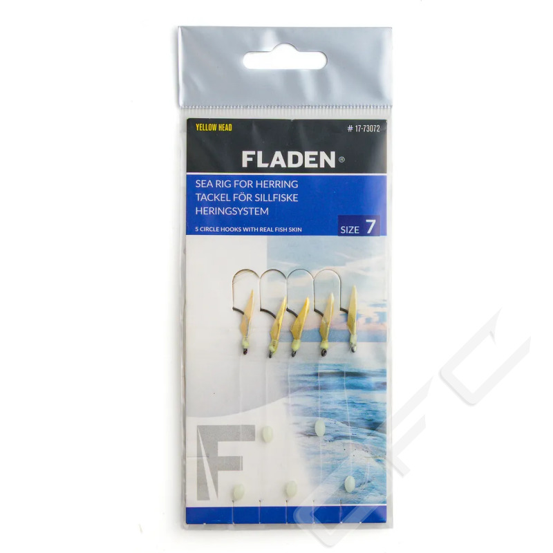 Fladen Sea Rig 5 Cirkelkrok Real Fish Skin #7 Yellow Head
