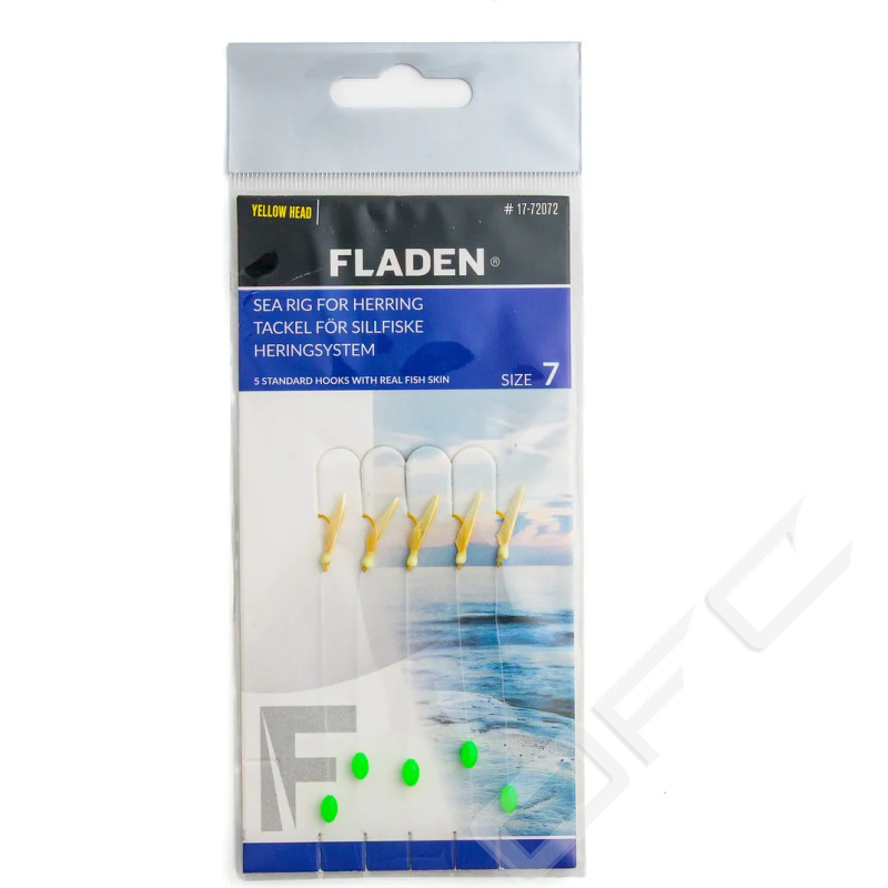 Fladen Sea Rig 5 Normal Krok är en effektiv häckla för att fånga betesfisk och andra mindre fiskar som tobis, sill/strömming. Utrustad med enkelkrok och självlysande pärla.