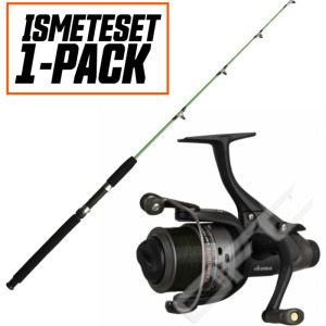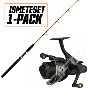 Ismeteset innehållande Okuma Carbonite XP BF 40 CBF-140a Baitrunner rulle och Wiggler spö röd strong 118,5 cm.