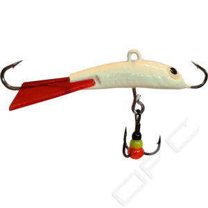 Balanspirk med extra bred och platt undersida som ger en "vinglande" rörelse. Utrustad med japanska kvalitetskrokar med lyspärla.