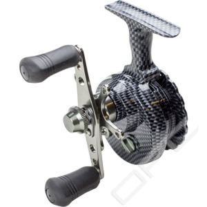 Pimpelrulle i grafit och plast med justerbar broms. Kommer färdig med påspolad lina.