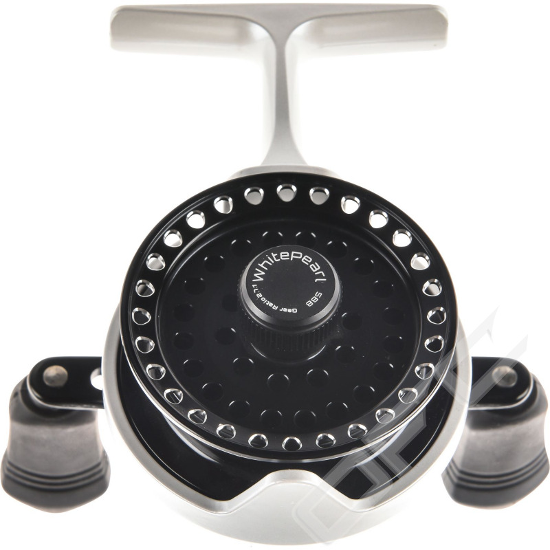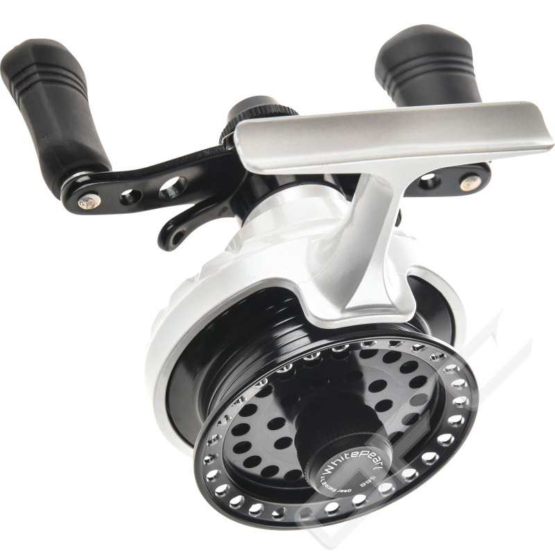 IFISH White Pearl, isfiskerulle med compositram och spole i svarvad aluminium. Frikoppling som kan justeras, finjusterbar broms, knarrfunktion. Utmärkt i kombination med IFISH FTT spön. Vänstervevad. Utväxling 2.6:1.