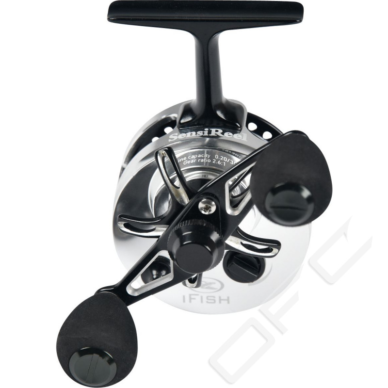 En mycket påkostad rulle som har allt som den kräsne isfiskaren kan begära. SensiReel är tillverkad i svarvad flygplansaluminium, har 5 kullager, frikoppling som kan justeras, finjusterbar broms och knarrfunktion. Vänstervevad. Utväxling 2.6:1.