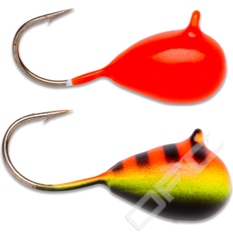 Wolfram Mormyshka i 2-pack med två olika färger i varje paket. Wolfram är 50% tyngre än bly vilket ger grymt bra kontakt med betet.