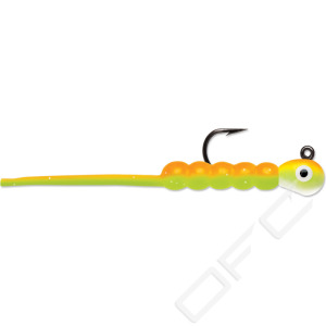 VMC Wax Tail Jig är en imitation av en vattenlevande liten insekt som älskas av abborre, öring och röding till exempel. Den lilla svansen på betet ger det en livfull gång och du behöver därför inte använda maggots eller andra naturliga beten på kroken för att locka till hugg.