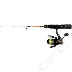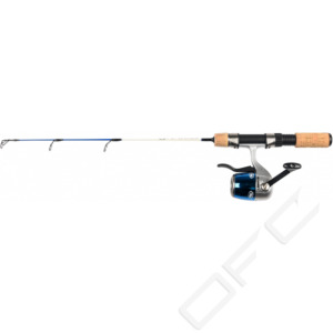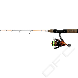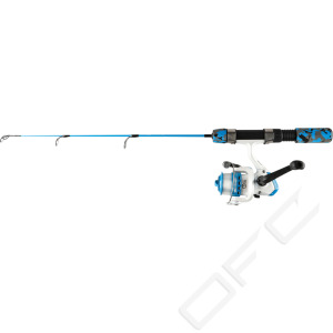 Pimpelset för barn och ungdomar. Färgmatchat och utvecklat för ett problemfritt fiske. Pimpelspö med spänstig glasfiberklinga, EVA-handtag och skruvrullfäste med kullagrad haspelrulle och påspolad lina.