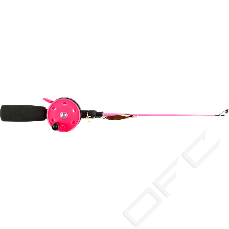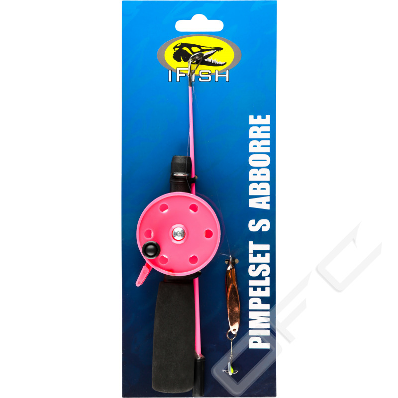 Pimpelset lämpligt för abborrfiske. Allt är färdigt och förberett för fisketuren, linan är påspolad och kvalitetetspirk med lyskrok är påknutet.