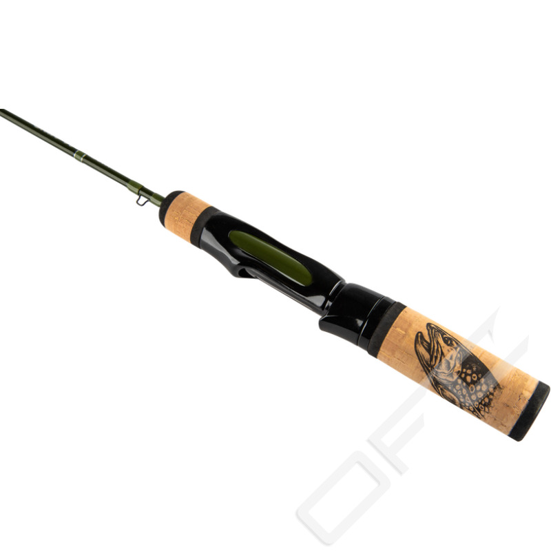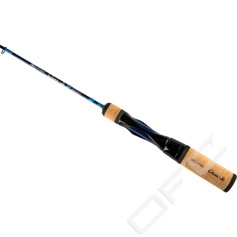 Pimpelspö med heldragen klinga som slipas platt mot toppen ger en mycket känslig topp som registrerar minsta napp samtidigt som klingan har kraft att kroka och drilla fisk. Char-X har utrustats med överdimensionerade kvalitetsringar för minimal nedisning, krokhållare, handtag av naturkork och ett rullfäste med grafitinlägg. Dessutom har handtaget fått ett vackert rödingmotiv.