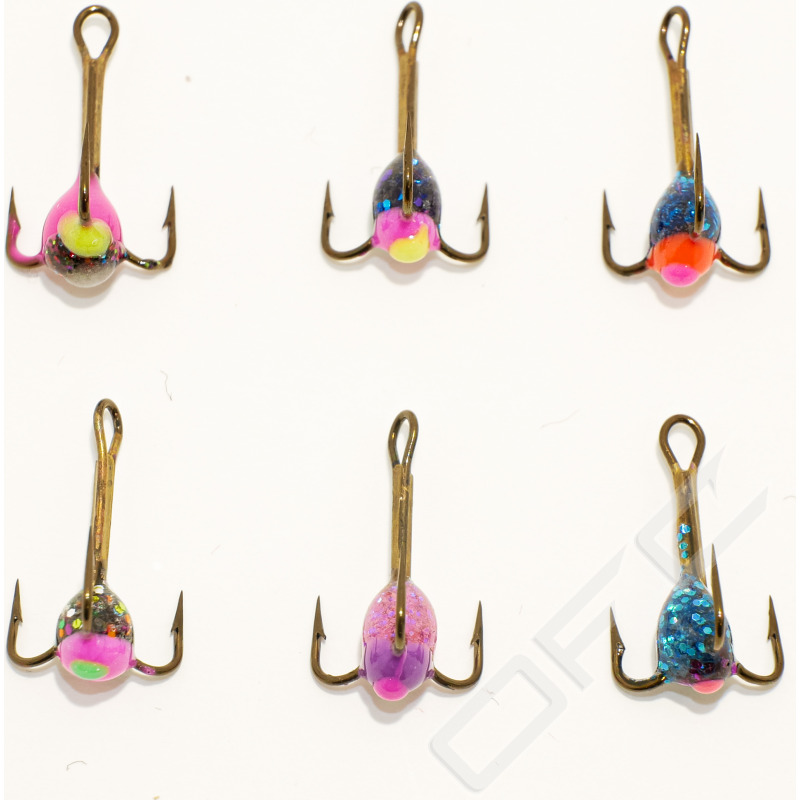 Tillverkade av färgsatt epoxy på en #12 WMC långskaftad pimpelkrok.