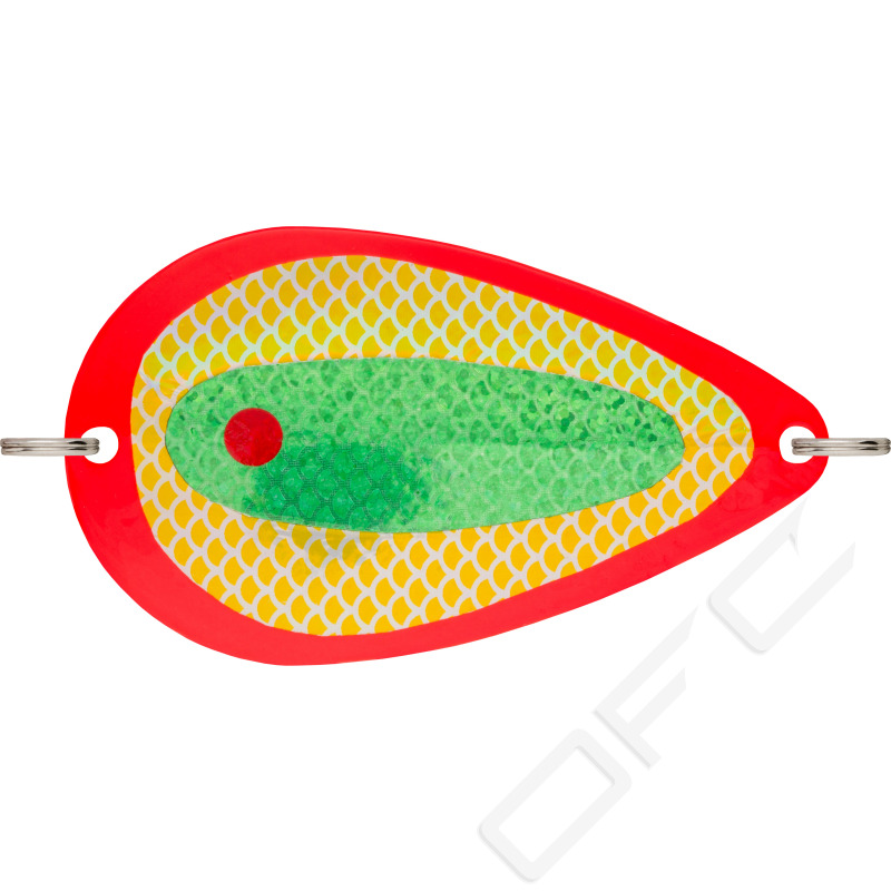 Kommer med holografiska detaljer på ena sidan och är orange på baksidan. Levereras med tafs och maggotkrok monterad.