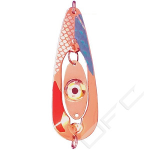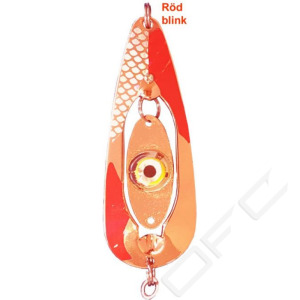 Orginalblänket för blinkar. Det är lätt att byta till andra typer av blinkar, såväl med inbyggda som utbytbara batterier. De flesta passar att montera i Blinkpirken Original. Här är Ögat monterad. Levereras komplett med Ögat, tafs och krok.