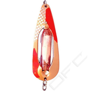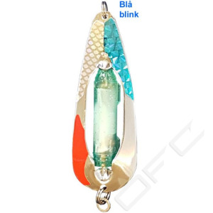 Orginalblänket för blinkar. Det är lätt att byta till andra typer av blinkar, såväl med inbyggda som utbytbara batterier. De flesta passar att montera i Blinkpirken Original. Här är dubbelblinken monterad. Levereras komplett med dubbelblink, tafs och krok.