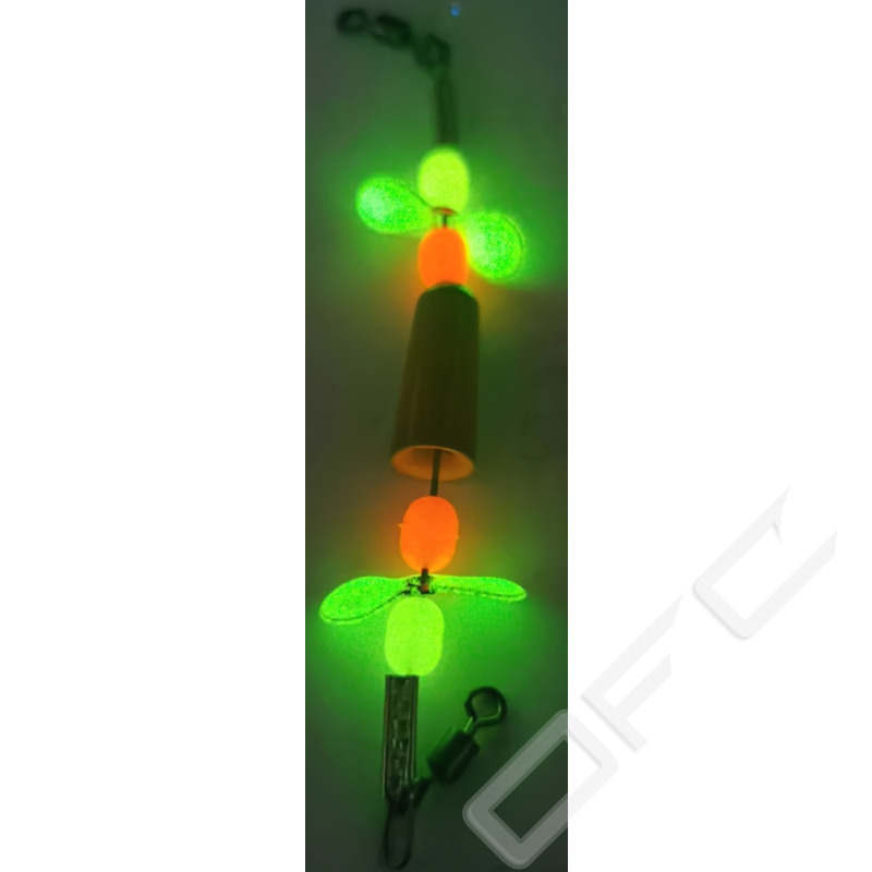 Kan riggas med krok och maggot under, i kombination med en mormyska eller blänke, eller kanske en blinkpirk? Här sätter bara fantasin stopp.