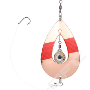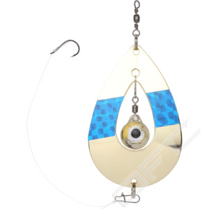 Wiggler Kalakinn Eye är ett blänke till främst öring, röding och regnbåge som är utrustad med extra kraftfulla ringar, lekande, kurroblink, hake och krok. Agna gärna med mask eller maggot.