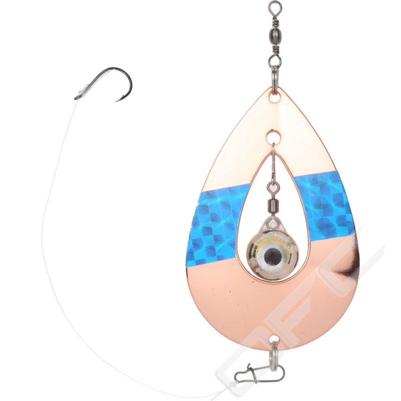 Wiggler Kalakinn Eye är ett blänke till främst öring, röding och regnbåge som är utrustad med extra kraftfulla ringar, lekande, kurroblink, hake och krok. Agna gärna med mask eller maggot.