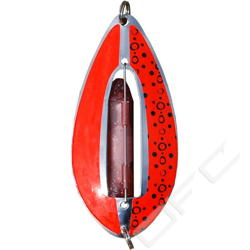 Wiggler Muskus D 9,8cm är en serie blänken med LED-blink som passar utmärkt till röding och öringsfisket. Muskus 9,8cm levereras med en 10cm tafs och krok i storlek #12. Blänken kan med fördel agnas med mask eller maggot!