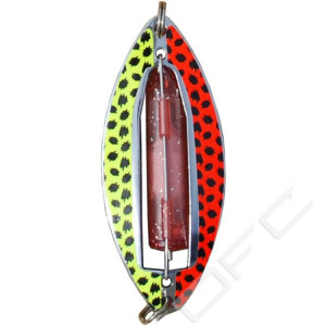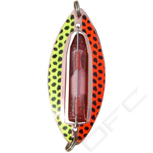 Wiggler Muskus O 8,1cm är en serie blänken med LED-blink som passar utmärkt till röding och öringsfisket. Muskus 8,1cm levereras med en 10cm tafs och krok i storlek #12. Blänken kan med fördel agnas med mask eller maggot!