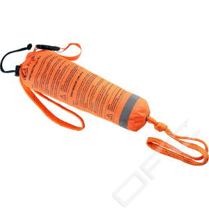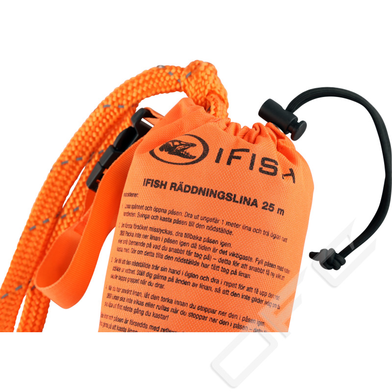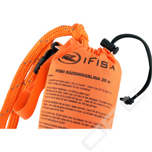 En 25 meter lång räddningslina som är viktad för att enkelt kunna kastas till den nödställde om olyckan skulle vara framme. Påsen och linan är försedda med reflex.
