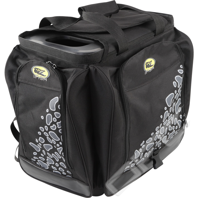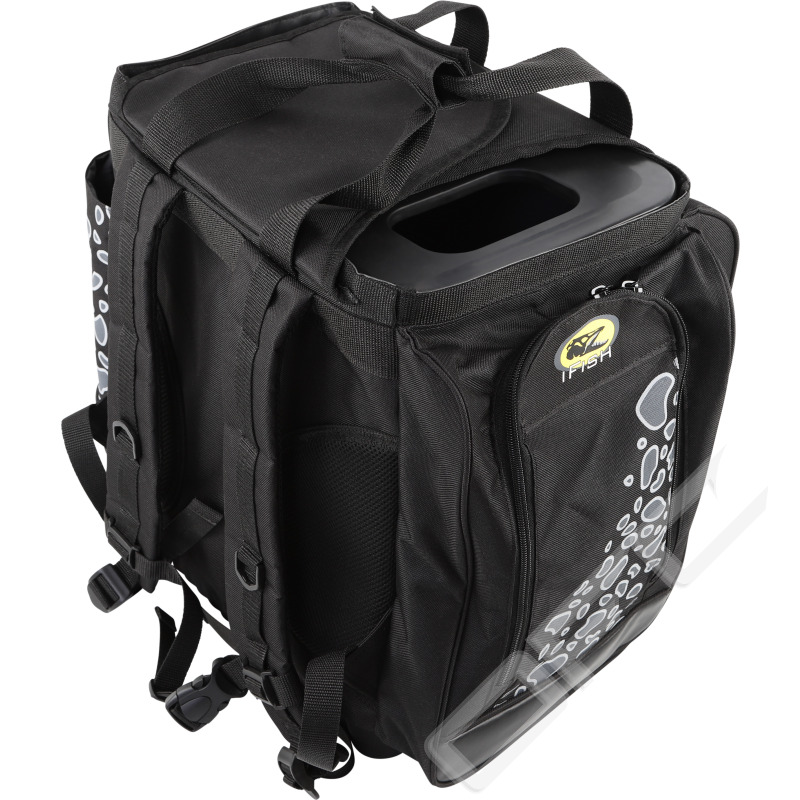 IFISH PackBack rymmer massor av utrustning och kan bäras på ryggen vilket gör att man har bägge händerna fria. Den stora förvaringslådan av plast har avtagbart lock med hål och rymmer ca 20L. Här kan man även förvara t.ex. angeldon och mindre mörtkruka samt dagens fångst som ska med hem. PackBack är tillverkad i tålig Oxford med vattentät botten av EVA, har bekväma justerbara axelremmar samt tre fickor för förvaring av spön och annan utrustning. Mått: 40 x 30 x 40cm