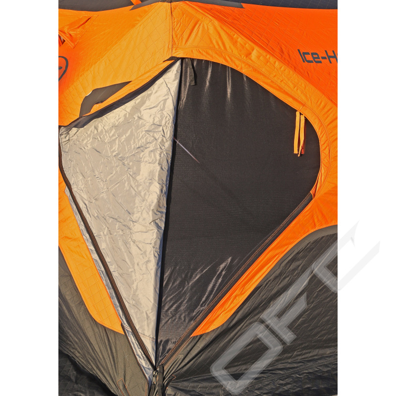 Isolerat sex-sidigt Pop-Up isfisketält. IFISH isolerade isfisketält är enkla att sätta upp. Ett isolerat isfisketält blir 35% varmare att vistas i och är praktiskt att ha med sig på fisketuren då det ger bra skydd mot hård vind och dåligt väder. Man kan även sitta inne i tältet och fiska. IFISH IceHotel 8 PLUS, med plats för upp till 8 personer, är tillverkat i slitstark 600D nylon med förstärkta detaljer och har tio fönster som kan mörkläggas samt två dörrar. Tack vare den extremt stora golvytan (ca 9 M²) får man mer yta att fiska på jämförbart med andra liknande tält. 12 styck isskruvar för förankring av tältet medföljer. Levereras i praktisk förvaringsväska.