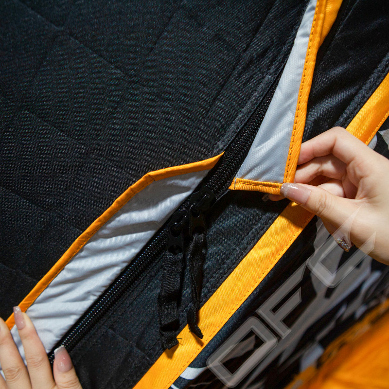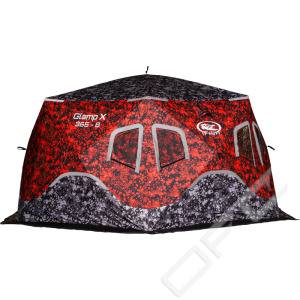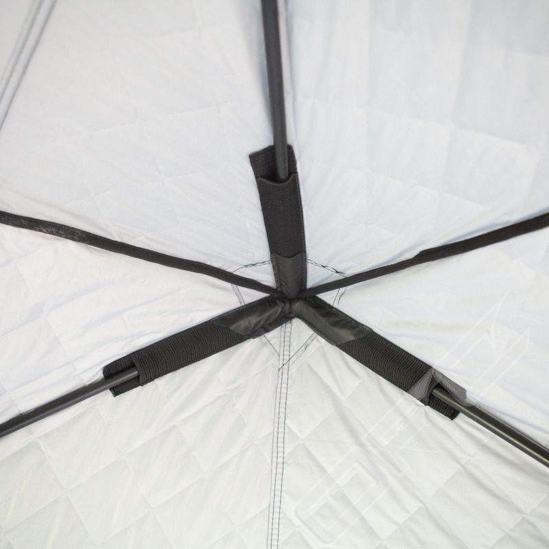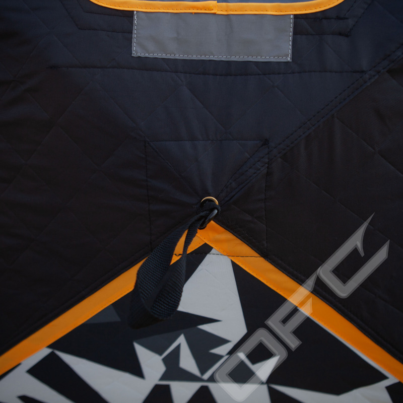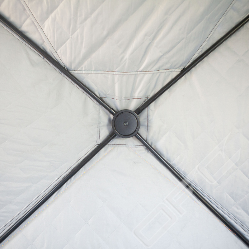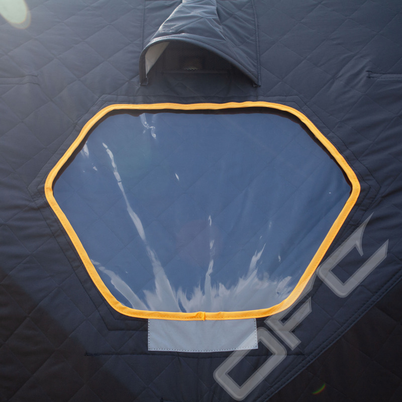Väinö Bunker Thermal Extreme istält. De tre största modellerna, XL, XXL och XXXL, är tält av pop-up-typ, liksom övriga tält i Väinö Bunker-kollektionen, som är mycket snabba och enkla att sätta upp och ta ner. Tälten har PVC-fönster som kan täckas med en flik. SBS-dragkedjor garanterar dörrarnas funktion även i kallt väder. I tältet finns luftkonditioneringsventiler, som hjälper till att bli av med fukt. Ramstrukturen är 11,0 mm slitstark glasfiber. Materialet är ett speciellt Thermal Fabric-3 Layer, det vill säga trelagers 300D Oxford, vars huvudtyg är PVC-belagd tältduk, med ett isoleringsskikt emellan och ett fodertyg inuti. Tältet har en vattenpelare på 10 000mm. Öppna basen och fästena i hörnen för att förankra tältet i isskyddet. En förvarings-/bärväska ingår. XL- och XXL-modeller tillgängliga med en genomgång med en icke brännbar silikontät krage. Måttet på genomföringen är 5 cm i överkant men går att skära ner den och den är töjbar men 10 cm är max vad den går att töja i nedskuret läge.