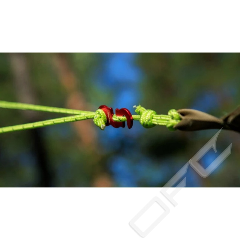 Den praktiska snabbkopplingen påskyndar montering och demontering av ett tält eller en presenning avsevärt. Setet innehåller en 12 meter lång lina och fyra snabbkopplingskrokar. Krokarna är tillverkade av stark och lätt 7001-aluminium, som är anodiserad röd. Tjockleken på den långa linan som medföljer är 6 mm.