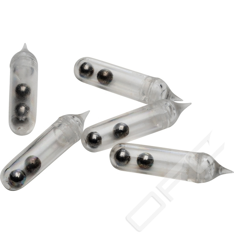 Utrustad med två stålkulor som tillsammans med höljet skapar ett starkt rasslande ljud, vilket gör fisken tokig.